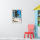 Tropical beach Ocean view, fake window scene, for a windowless office wall. Fun, realistic optical illusion scenic poster for an office or study wall.