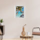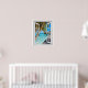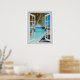 Ocean view fake window. Palm trees scene, for a windowless office wall. Fun, realistic optical illusion scenic poster for an office or study wall.