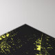 A bold striking image of a silhouetted palm tree. Posterised design of palm trees and the ocean. Yellow and black scheme. Pop art style. Tropical art. Tropical Palm trees in a silhouette sunset style.