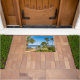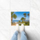 Welcome doormat that can be customized featuring a peaceful morning view of some palm trees in Gulf Breeze, Florida, United States. There is a table and chairs under the trees making the perfect spot to relax and enjoy the view. Looking for more prints or products? Feel free to visit my store: http://www.zazzle.com/timelessmomentsphtgy This photo was taken by Jennifer White with Timeless Moments Photography. All images are copyrighted © Timeless Moments Photography.