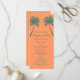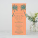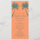 Palm Trees Coral Peach and Teal Blue Turquoise Beach Vertical Wedding Programs with two palm trees at the top. These are perfect for beach wedding programs or destination wedding programs. This is a 4" x 9" vertical two sided wedding program. Just use the template fields to add your own wedding ceremony details or use the "Customize It" button to add or delete lines of text or move things around.