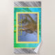 Tropical hot summer days. Greetings from Point Pleasant Beach, N.J. Personalize for any town. Written in sunny yellow text within a yellow pink frame of three palm trees with fronds blowing in the ocean breeze with pretty blue sky. Background has tiled blue green hues. Sides of towel has wooden deck boards. Click customize to increase or decrease the font size to fit. Cool for male or female who loves the beaches and boardwalks. Buy in bulk and save. Original Photography design © TamiraZDesigns.