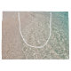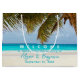 Gift bag or favour bag for guests attending a destination, beach wedding. Fill this large welcome bag with a tropical scene of turquoise ocean water and a big palm tree. Customize the lines of text to include names of the bride and groom, wedding destination location and date.