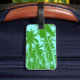 Palm Tree Design with Monogram. Green and blue. Pattern of leaves, tropical Palm trees.