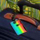 Stand out in the baggage carousel with a custom luggage tag from Zazzle! No larger than a business card and constructed of 100% acrylic, this luggage tag is ready to stand-up to the travel demands of any road warrior or adventure seeker. Produced using the AcryliPrint®HD printing process, your baggage tag shows designs, text, and photos in vibrant clarity and brilliant colours. Customize with your personal information on each side and escape bag mix ups for years to come. Dimensions: 2" x 3.5" (business card size). Made of ultra-durable acrylic. UV resistant and waterproof. Leather luggage strap included.