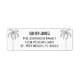 Deux palmiers artistiques bordent votre nouvelle adresse et les détails sur une étiquette d'adresse de retour qui fait partie du New Radiance Holiday Moving - Florida Collection. Le texte de l'exemple peut être rapidement révisé par vous dans la liste déroulante Personnaliser ce Modèle. Cette étiquette d'adresse de retour peut être utilisée comme un étiquette autonome... bien qu'elle ait été conçue pour coordonner avec une nouvelle maison (Floride) pour la carte de voeux de Noël, carte plate et carte postale.