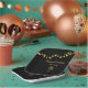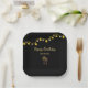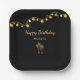 Tropical Beach Birthday party paper plate, with an elegant palm trees string lights design on a black background. With customizable typography lettering, you add your own information. A glamourous addition to your beach inspired dinner table.
