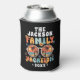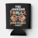 Get ready to chill in style with this customizable family vacation can-cooler! Featuring a vibrant sunglasses illustration with palm tree reflections and the fun caption "family vacation" in a groovy retro font. Personalize it with your family name and the current year for a unique touch. Perfect for beach outings, picnics, and summer gatherings. Make memories last with this trendy accessory!