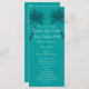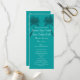 Palm Trees Teal Blue Turquoise Beach Vertical Wedding Programs with two palm trees at the top. These are perfect for beach wedding programs or destination wedding programs. This is a 4" x 9" vertical two sided wedding program. Just use the template fields to add your own wedding ceremony details or use the "Customize It" button to add or delete lines of text or move things around.