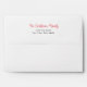 Tropical Christmas envelope, with a palm trees illustration and script typography. With red and black customizable lettering, you add your own information. A cheerful addition to your holiday cards and invitations.
