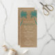 Palm Trees Distressed Vintage Teal Blue Turquoise Beach Vertical Wedding Programs with two palm trees at the top. The background is a distressed rustic brown paper look. These are perfect for beach wedding programs or destination wedding programs. This is a 4" x 9" vertical two sided wedding program. Just use the template fields to add your own wedding ceremony details or use the "Customize It" button to add or delete lines of text or move things around.
