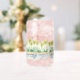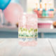 De beaux palmiers aquarelles bordent la plage de ce verre unique portant le nom du couple et la date du mariage.