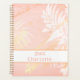 Arrière - plan tropical abstrait en corail, rose et blanc. Avec des feuilles de palmiers blancs, un arrière - plan rose de couleur or et pêche avec des traits de brosse faux or. Personnalisez et ajoutez votre nom et une année en or rose.
