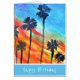 Plage au coucher de soleil avec palmiers, art original de Sacha Grossel. Coucher de soleil rouge et orange, art thématique de plage de rêve dans le style aquarelle original. Thème de coucher de soleil surf.
