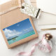 Autocollant photo rectangulaire avec une petite île avec un palmier dans le lagon turquoise de l'île tropicale Bora Bora près de Tahiti en Polynésie française.