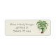 Étiquettes d'adresse de retour de palme pointillée. Étiquettes blancs cassés avec une police imprimée moderne et une image de palmier feuillu sur le côté droit. Parfait pour tous ceux qui vivent dans une situation tropicale.