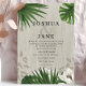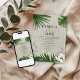 Donnez le ton à un mariage époustouflant avec ce palmier tropical et ce faire-part de mariage empreinte de léopard. Doté de feuilles verdoyants, d'un poster de animal neutre moelleux et d'un arrière - plan de rustique de style bois, cet invitation allie élégance sauvage et charme naturel. Customisez avec vos noms, dates et détails du lieu pour créer la première impression parfaite pour votre grand jour. Idéal pour les mariages de destination, les fêtes de plage ou les thèmes inspirés de la jungle !