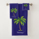 Elégant palmier vert personnalisé et script sur le ensemble de serviettes bleu. Idéal pour tous. Idéal accent maison ou pour un cadeau d'anniversaire et de Noël. Le texte peut être personnalisé avec votre texte.