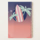 Serviette de plage tropicale avec palmiers, lampes à cordes et planches de surf.