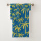 Améliorez votre décor de salle de bain avec un ensemble de serviettes de bain sur mesure. Tropical Palm Trees Blue Yellow Beach Island Motif Design Ensemble de serviettes de bain. Super idée cadeau de décoration maison.