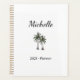 Plage tropicale planificateur personnalisé, avec une illustration de palmiers colorés dessinée à la main. Avec des lettres de typographie noire, vous customisez avec votre propre nom. Une façon moderne et professionnelle de rester organisé.