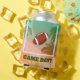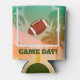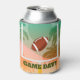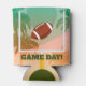 Football game day personalized can coolers for beer and soda cans and bottles featuring palm trees and a football sailing through the uprights.
