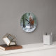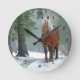 Beautiful Palomino horse in winter snow with pine trees wall clock