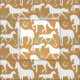 Fabric printed with a pattern of lovely horses, in Palomino horse colours.