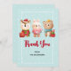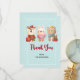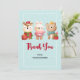 Carte de remerciements avec une mignonne illustration représentant un lapin, un ours et un cerf vêtus d'un engin festif. Adorable et capricieux.