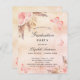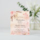 A rose gold, blush pink rustic faux metallic looking background. Decorated with rose gold and pink florals, roses, pampas grass, butterflies and a golden cross. Personalize and add a name and the details.