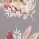 A soft grey/pink "mountbatten pink" background. Decorated with pampas grass and pink flowers and beige and golden grass.
