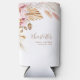 Minimalist pink floral arrangement with simple rusty brown text on a white background. These bridal shower can coolers feature a neutral earth tones pampas grass theme. All text can be customized and the design is printed on the front and back of the can cooler.