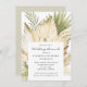 Boho desert bouquet post-wedding brunch invitation with hand-painted watercolor palms, pampas grass, white orchids and dried leaves in natural earth tones. Coordinating invitations and accessories available in store.