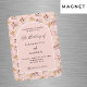 An arch frame on a pattern of pampas grass and pink flowers and a golden cross. Personalize and add your names and details.