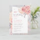 Pampas Grass |Pink Rose Blooms 40th Birthday Party Invitation
