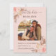 A modern wedding Save the Date photo card. Decorated with blush pink and rose gold florals and pampas grass. Personalize and add your photo and wedding details.