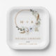 Bohemian wedding personalized paper plates with watercolor pampas grass wreath and custom monogram.