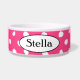 Pamper your pet with a custom large bowl, polka dots and personalization. Made of 100% white ceramic. A happy pet makes a happy owner.