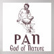 The Greek god of shepherds and flocks, he is a son of the god Hermes. Pan was depicted as a satyr with a reed pipe, a shepherd's crook and a branch of pine or crown of pine needles.