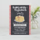 This pancakes and pyjamas birthday party invitation features a stack of pancakes, a banner and chalk-like font on a scanned chalkboard background. The sides of the invitation features a plaid pattern which has also been used for the back. I wanted to create some pancakes and pyjamas sleepover birthday invitations because I don't have any invitations in this theme at the store at the moment. This invitation pancakes and pyjamas birthday party invitation can be used for various ages and is ready to be personalized.