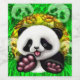 Cute and Happy Fluffy Little Panda Bear, with Bamboo and a Big Orange Sun on Background. Original Digital Painting Copyright BluedarkArt.