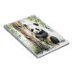 Cute panda bear by a tree with bamboo leaves in watercolor artwork.