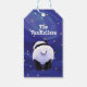 Animal Parade Cute Panda Bear Gift Tag features our cute Panda Bear standing in a snowy landscape with a starry night sky with a playful wavy orange and blue border painted by our talented children's illustrator Traci Van Wagoner. On the front above the playful animal art art is a customizable greeting and on the back you'll find the cute Panda Bear from the back with your family's name. Make sure to add your personal information or delete the words to make these custom tags your very own. A fun way to tag all your gifts this holiday season. Share a smile today. Custom designs available.