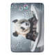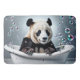 Cute panda bear in a white bathtub with iridescent soap bubbles
