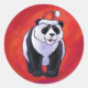 Panda Bear in Santa Hat On Red Classic Round Sticker