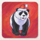 Panda Bear in Santa Hat On Red Square Paper Coaster