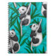 Hand- drawn pattern with giant panda cubs climbing branches and bamboo leaves.
