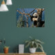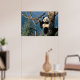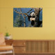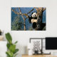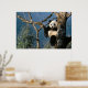 Un panda Dans une affiche d'arbre.a un panda noir et blanc assis au sommet d'un arbre avec une forêt derrière lui et un ciel bleu.c'est une belle photo.