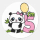 Fifth Birthday cute panda girl with pink bow, holding bamboo leaves and a yellow balloon, text reads "I'm 5" with big pink 5.