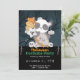 Adding a delightful twist to this spooky scene, two lovable white skeletons stand sentinel on either side of the "Halloween Costume Party" text. These adorable companions bring a whimsical and charming element to the invitation, exuding an air of playful spookiness.